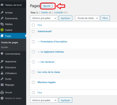 Les pages vont apparaître ainsi ( la présentation peut différer selon votre thème) :